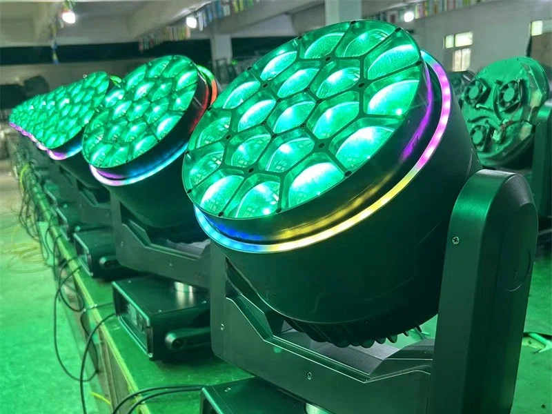 We had brought our 19×40W moving head wash lights with us, and soon it was time to turn words into action. As the lights powered on, the room changed instantly. The brightness was bold, the RGBW colors clean and rich. The client compared it directly with international brands they already knew—and nodded in approval, especially when we talked about pricing.